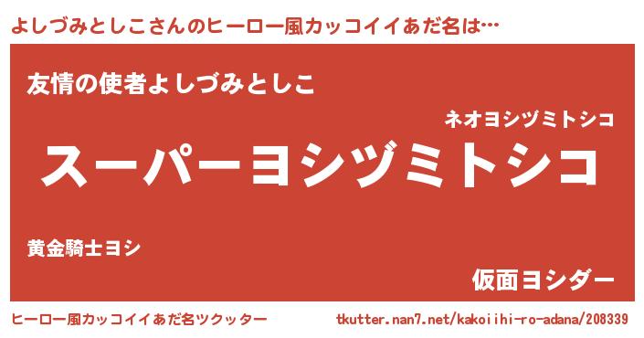 | 男性向けラノベタイトル風あだ名 | 『転生したらよしづみとしこだった件』 |
