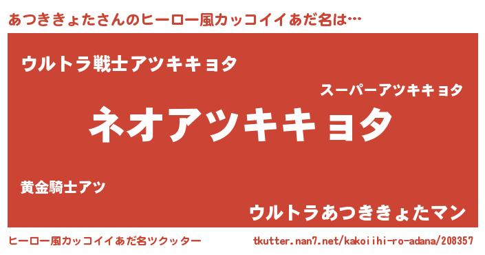 | 意味不明あだ名 | 『永久保存あつききょた』 |