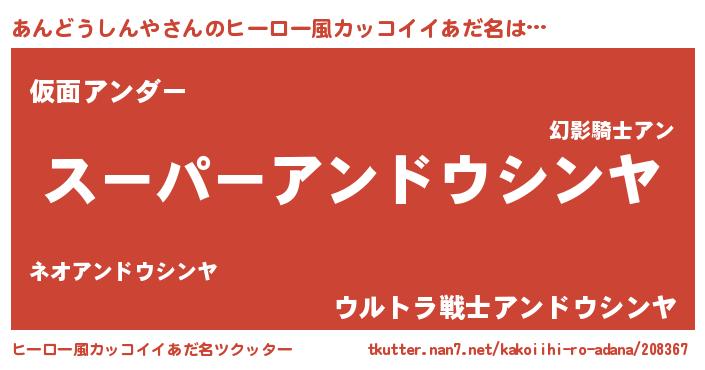 | 胡散臭い通販商品みたいなあだ名 | 『億万長者になれる霊験あらたかなお札…その名も「あんどうしんや」』 |