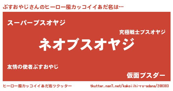 | 男性向けラノベタイトル風あだ名 | 『ぶすおやじという概念が存在しない退屈な世界 』 |