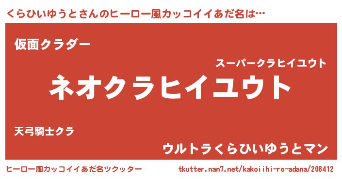 | ヘコむあだ名 | 『くらひいゆうと(遠い目)』『なまこ酢』 |