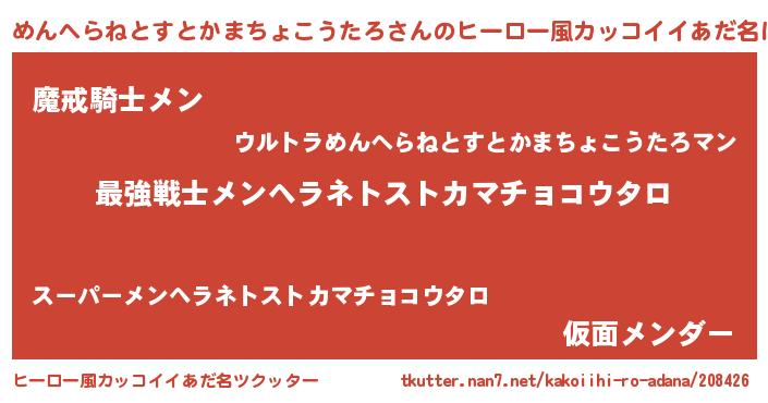 | 肩書あだ名 | 『めんへらねとすとかまちょこうたろ少将』 |