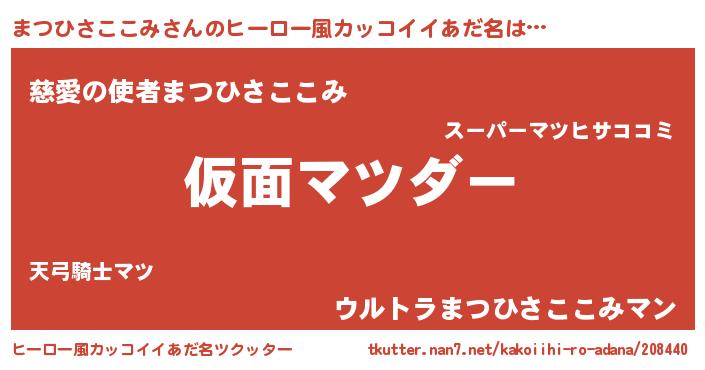 | 男性向けラノベタイトル風あだ名 | 『この素晴らしい世界にまつひさここみを!』 |