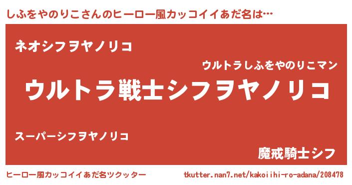 | 意味不明あだ名 | 『自称しふをやのりこ』 |