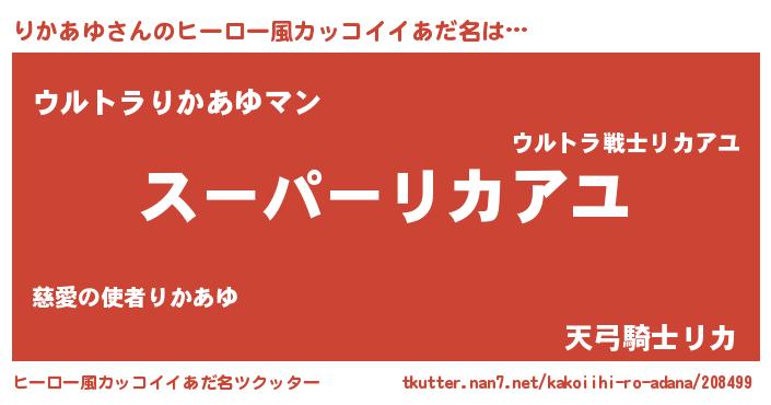 | 胡散臭い通販商品みたいなあだ名 | 『必ず成功する霊験あらたかなお札…その名も「りかあゆ」』 |