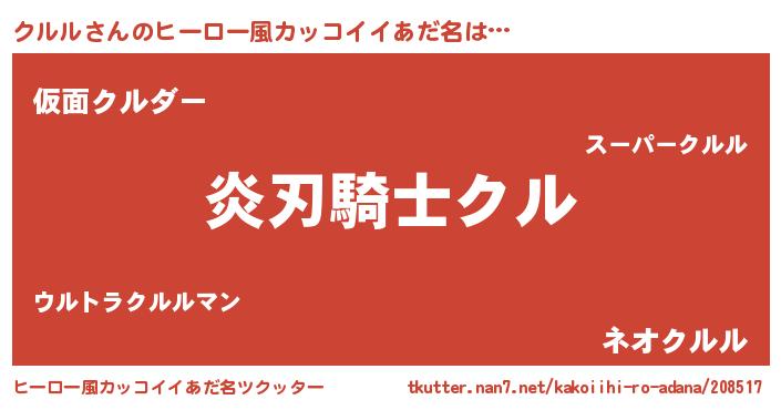 | ヘコむあだ名 | 『クル太郎』『クルル(小並感)』 |