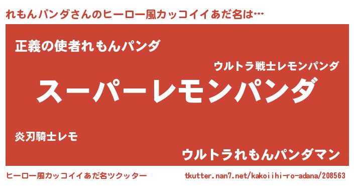 | 男性向けラノベタイトル風あだ名 | 『れもんパンダに滅ぼされるだけの簡単なお仕事です』 |