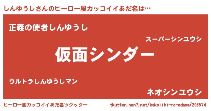 | 男性向けラノベタイトル風あだ名 | 『しんゆうしに滅ぼされるだけの簡単なお仕事です』 |