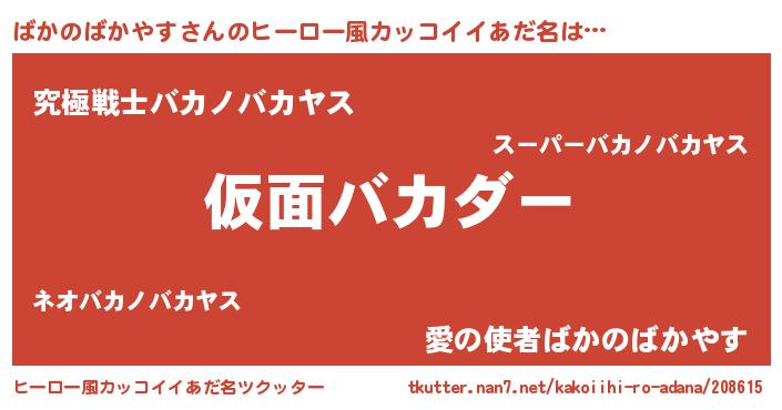 | 男性向けラノベタイトル風あだ名 | 『この素晴らしい世界にばかのばかやすを!』 |