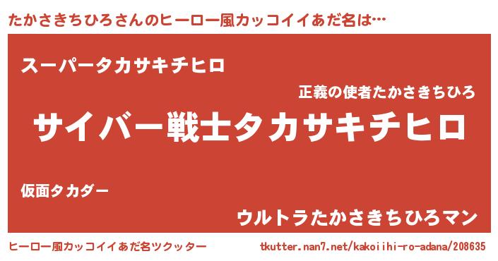 | 男性向けラノベタイトル風あだ名 | 『Re:たかさきちひろから始める異世界生活』 |