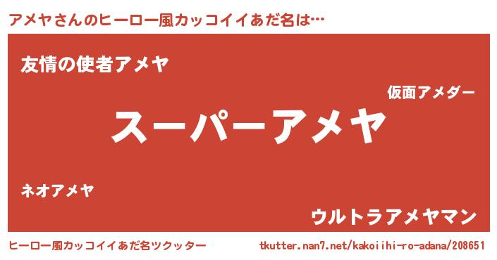 | 欧米人風あだ名 | 『マイケルアメヤ』『ダニエルアメヤ』 |