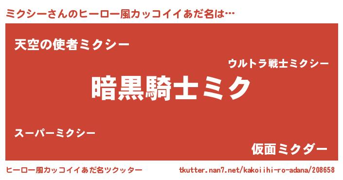 | 意味不明あだ名 | 『とにかく怪しいミクシー』 |