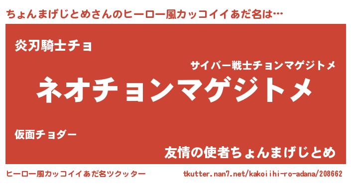 | 胡散臭い通販商品みたいなあだ名 | 『絶対に幸福をもたらす水素水…その名も「ちょんまげじとめ」』 |