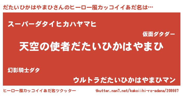 | 欧米人風あだ名 | 『だたいひかはやまひ・ステッグマイヤー』 |
