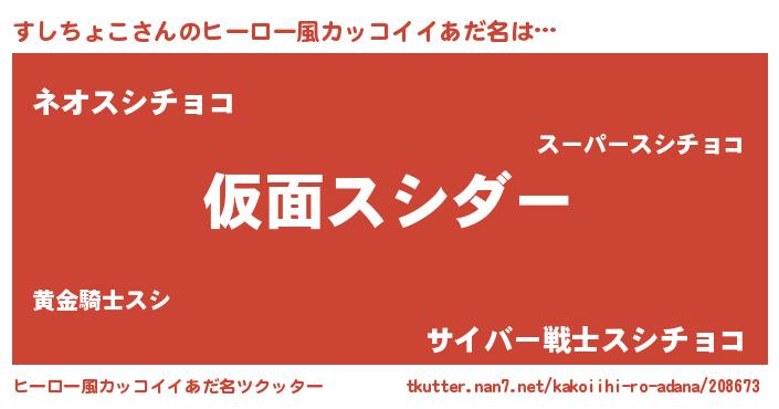 | 女子向けラノベタイトル風あだ名 | 『すしちょこの玉の輿計画!』 |