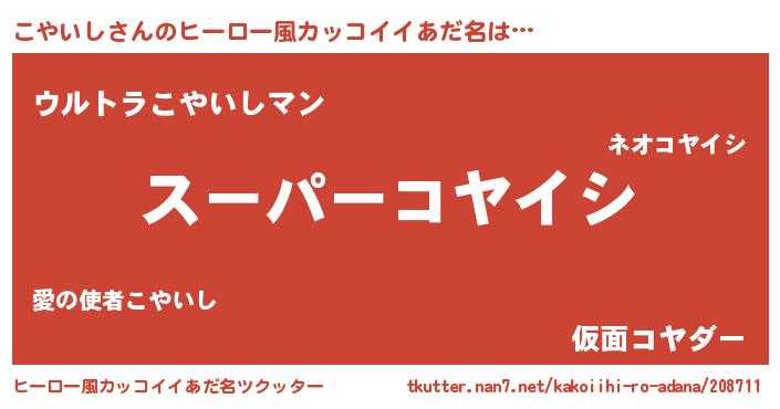 | 男性向けラノベタイトル風あだ名 | 『コヤイシアートオンライン』 |