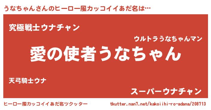 | 男性向けラノベタイトル風あだ名 | 『おまえをオタクにしてやるから、俺をうなちゃんにしてくれ! 』 |