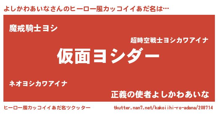 | 意味不明あだ名 | 『住所不定無職よしかわあいな(7歳)』 |