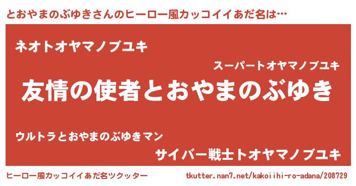 | ヘコむあだ名 | 『とおやまのぶゆき(震え声)』『とおにー』 |