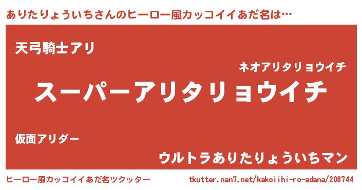 | 男性向けラノベタイトル風あだ名 | 『アリタリョウイチスレイヤー』 |