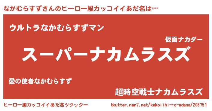 | 男性向けラノベタイトル風あだ名 | 『なかむらすずに滅ぼされるだけの簡単なお仕事です』 |
