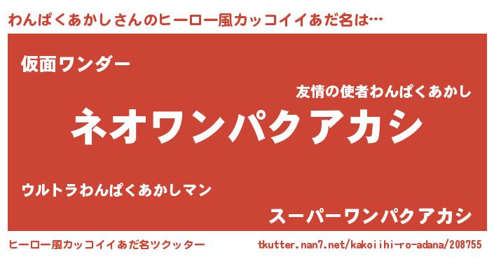 | ヘコむあだ名 | 『わんぱくあかし(小並感)』『わんもー』 |