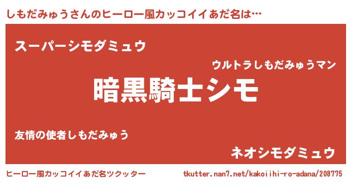 | 意味不明あだ名 | 『とにかく怪しいしもだみゅう』 |