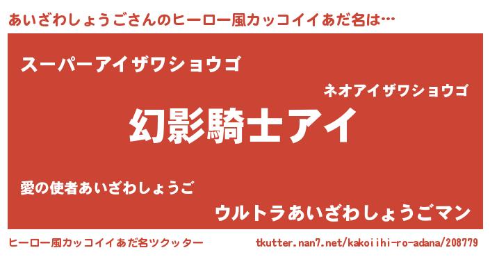 | 男性向けラノベタイトル風あだ名 | 『あいざわしょうごの嫁は女の子じゃないと思った?』 |