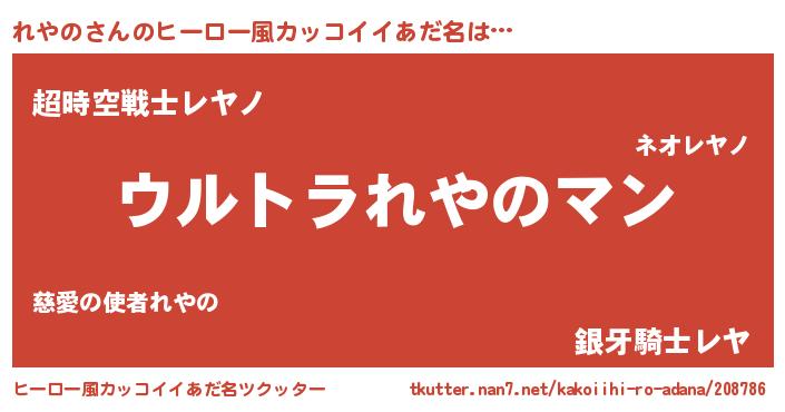| 意味不明あだ名 | 『もやし科れやの属』『自称れやの』 |