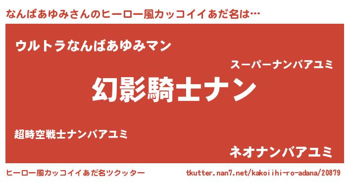 | 男性向けラノベタイトル風あだ名 | 『なんばあゆみの嫁は女の子じゃないと思った?』 |