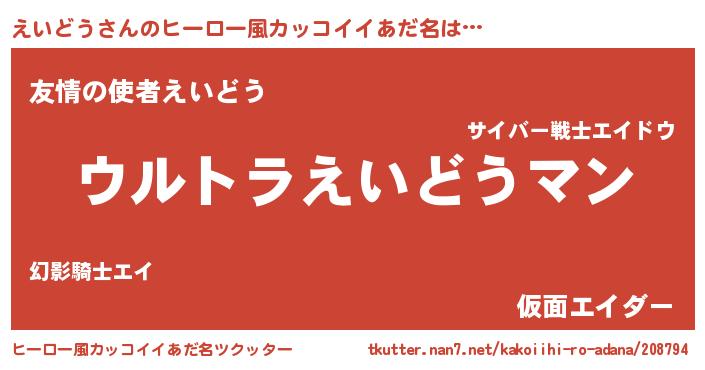 | 意味不明あだ名 | 『えいどうフォーエバー』『自称えいどう』 |
