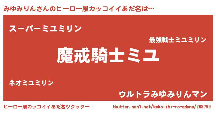 | 胡散臭い通販商品みたいなあだ名 | 『信頼と実績のサプリメント…その名も「みゆみりん」』 |