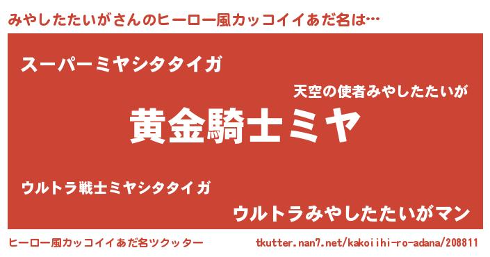 | ポケモン風あだ名 | 『ヒミヤシタタイガ』『ミヤチュウ』 |