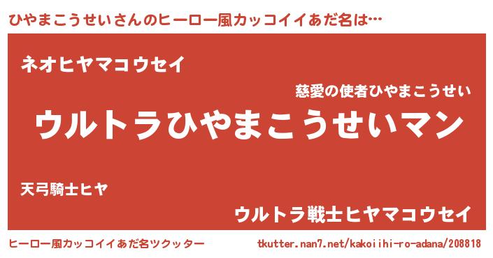 | 意味不明あだ名 | 『ひやまこうせいフォーエバー』 |