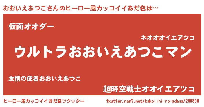 | 欧米人風あだ名 | 『おおいえあつこクリステル』 |