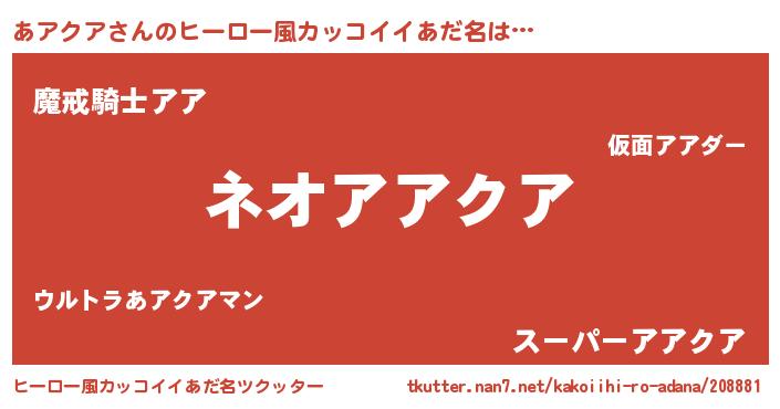 | 男性向けラノベタイトル風あだ名 | 『あアクアという概念が存在しない退屈な世界 』 |