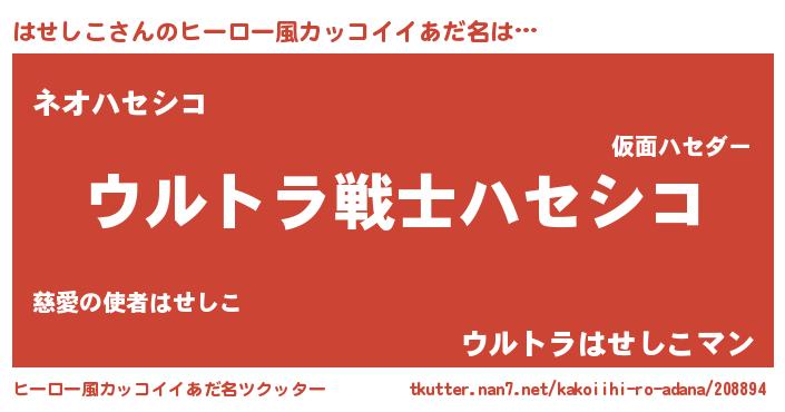 | 意味不明あだ名 | 『自称はせしこ』『永久保存はせしこ』 |