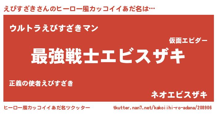 | ファンタジー風あだ名 | 『ゼエビトゥ』『エターナルエビスザキー』 |