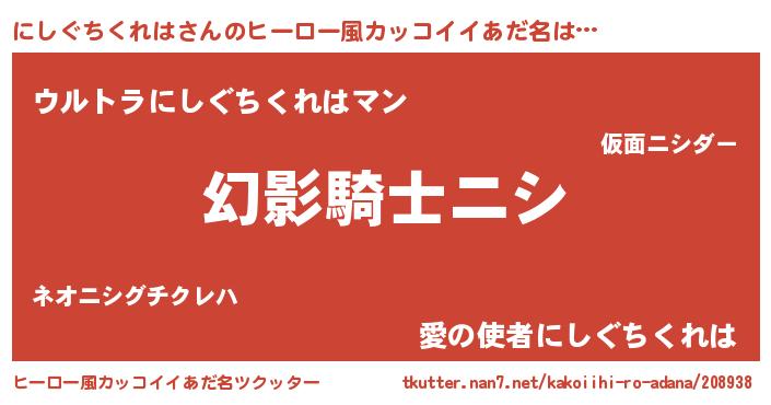 | 欧米人風あだ名 | 『ウサインにしぐちくれは』 |