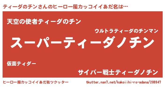| 男性向けラノベタイトル風あだ名 | 『ティーダノチンアートオンライン』 |
