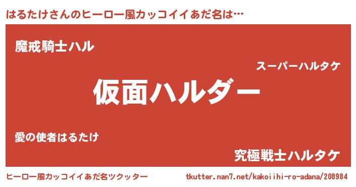 | 意味不明あだ名 | 『住所不定無職はるたけ(8歳)』 |