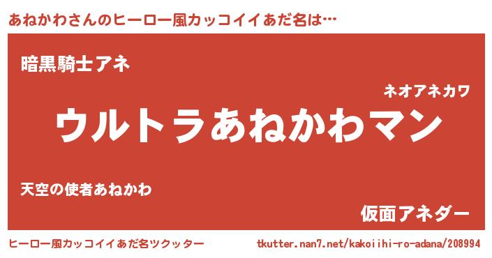 | ポケモン風あだ名 | 『アネカダネ』『ヒアネカワ』 |