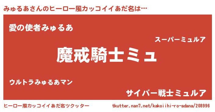 | 男性向けラノベタイトル風あだ名 | 『ダンジョンにみゅるあを求めるのは間違っているだろうか』 |
