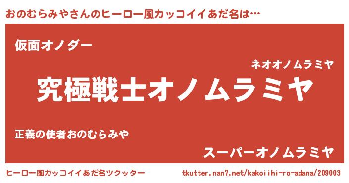 おのむらみやさんのヒーロー風カッコイイあだ名をツクッター!