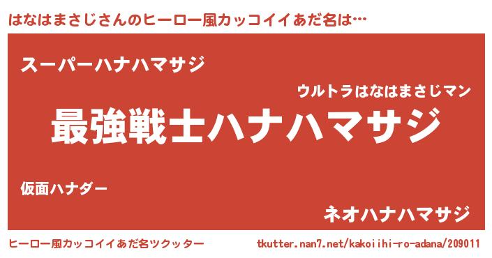 | 男性向けラノベタイトル風あだ名 | 『はなはまさじに滅ぼされるだけの簡単なお仕事です』 |