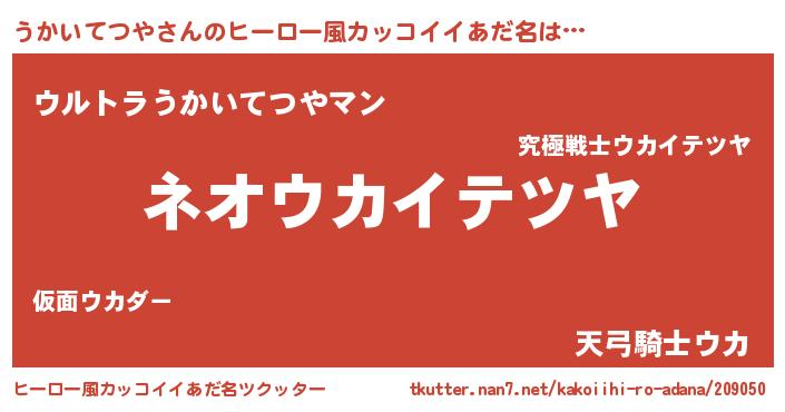 | 男性向けラノベタイトル風あだ名 | 『緋弾のウカイテツヤ』 |