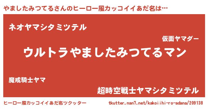 | 男性向けラノベタイトル風あだ名 | 『やましたみつてる~年齢イコール彼女いない歴の魔法使い~』 |