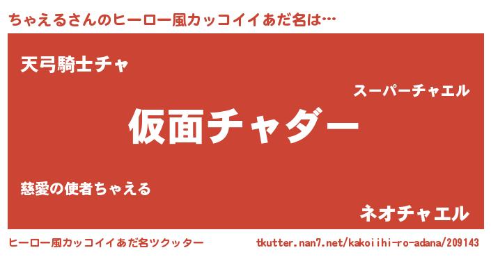 | ヘコむあだ名 | 『ちゃ太郎』『ちゃえる(遠い目)』 |