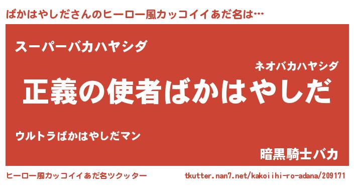 | 男性向けラノベタイトル風あだ名 | 『おまえをオタクにしてやるから、俺をばかはやしだにしてくれ! 』 |