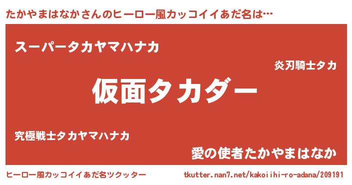 | 男性向けラノベタイトル風あだ名 | 『タカヤマハナカスレイヤー』 |